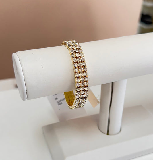 #11949 - 3 Row Stretch Rhinestone Bracelet - Crystal Gold