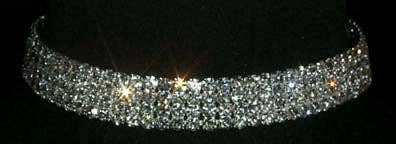 #12203 - 4 Row Stretch Rhinestone Necklace - Clear Crystal Silver