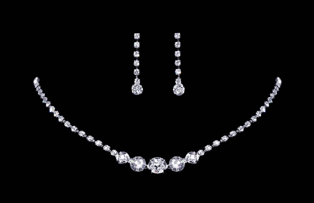 This necklace is 11.75" - 15.75" long (adjustable.) The earrings are 1" tall. Plated in Sterling Silver.