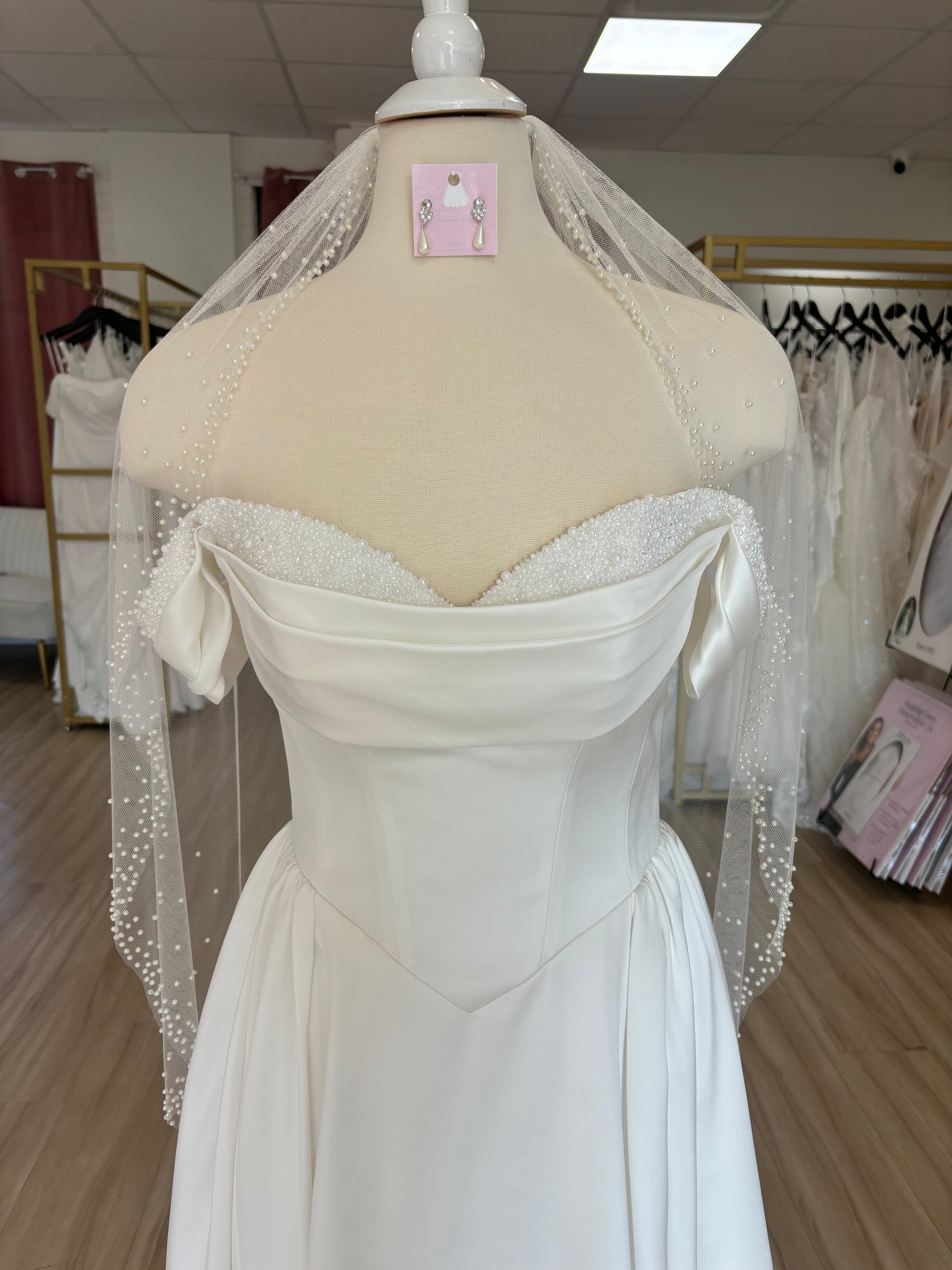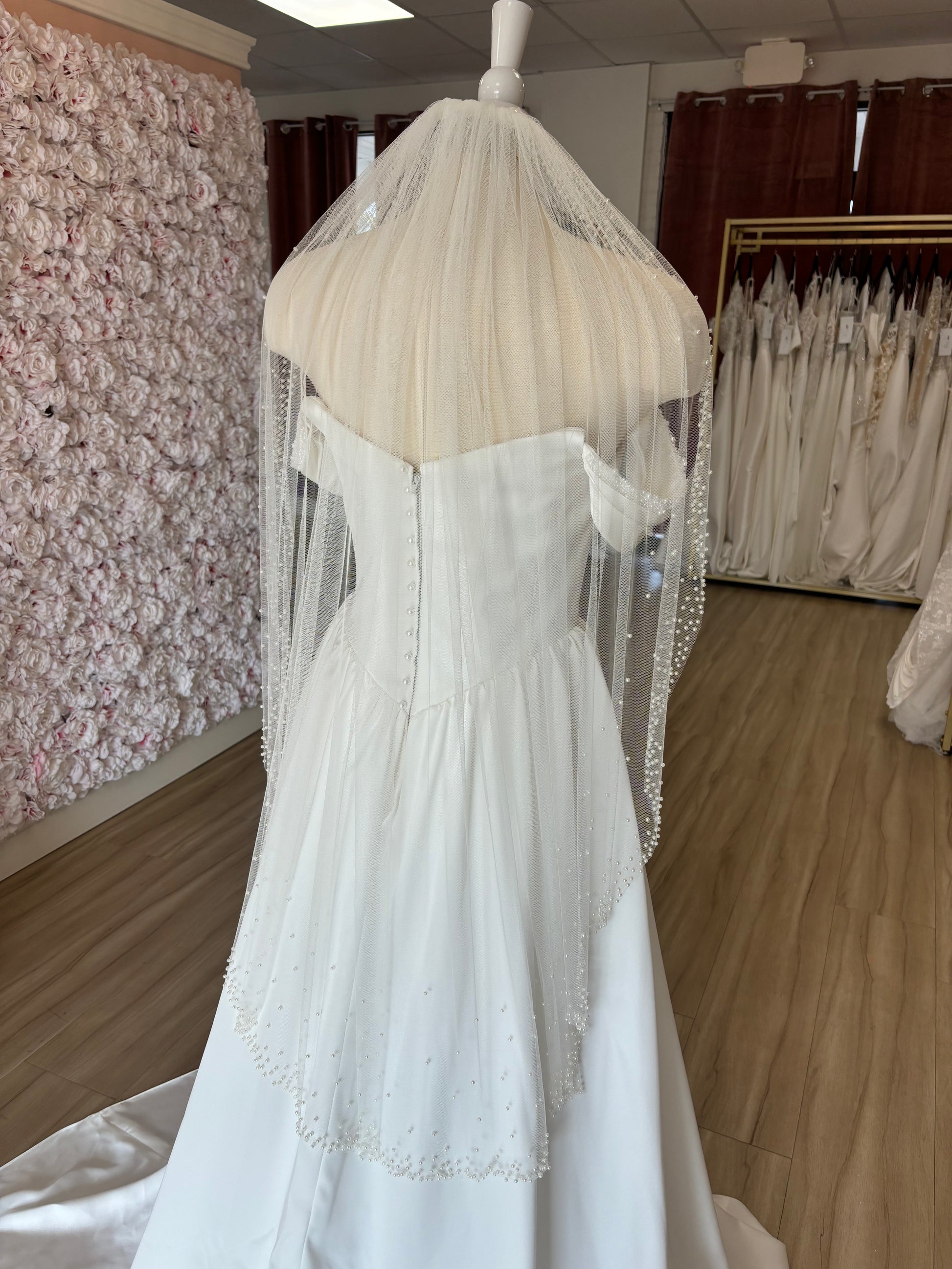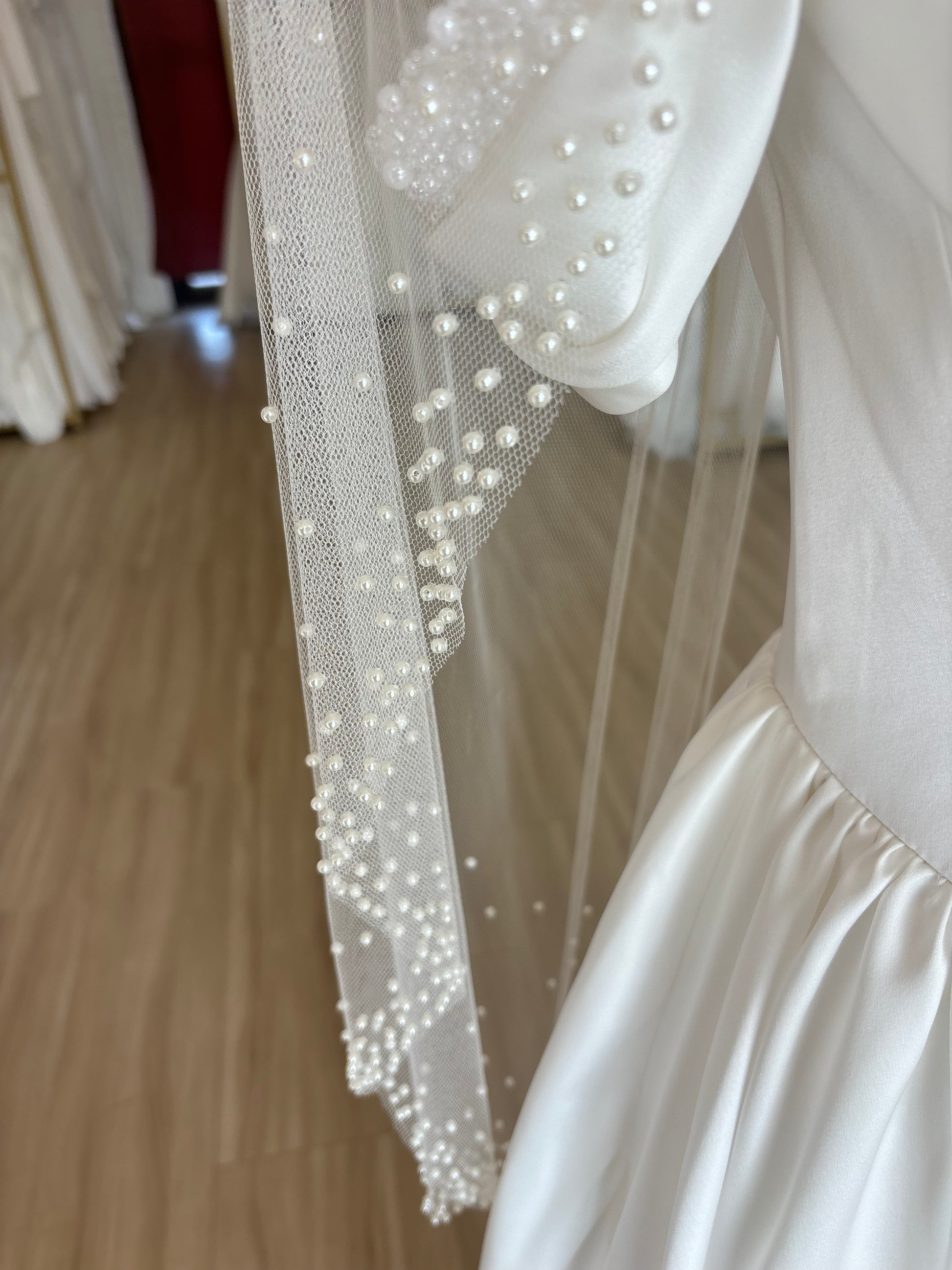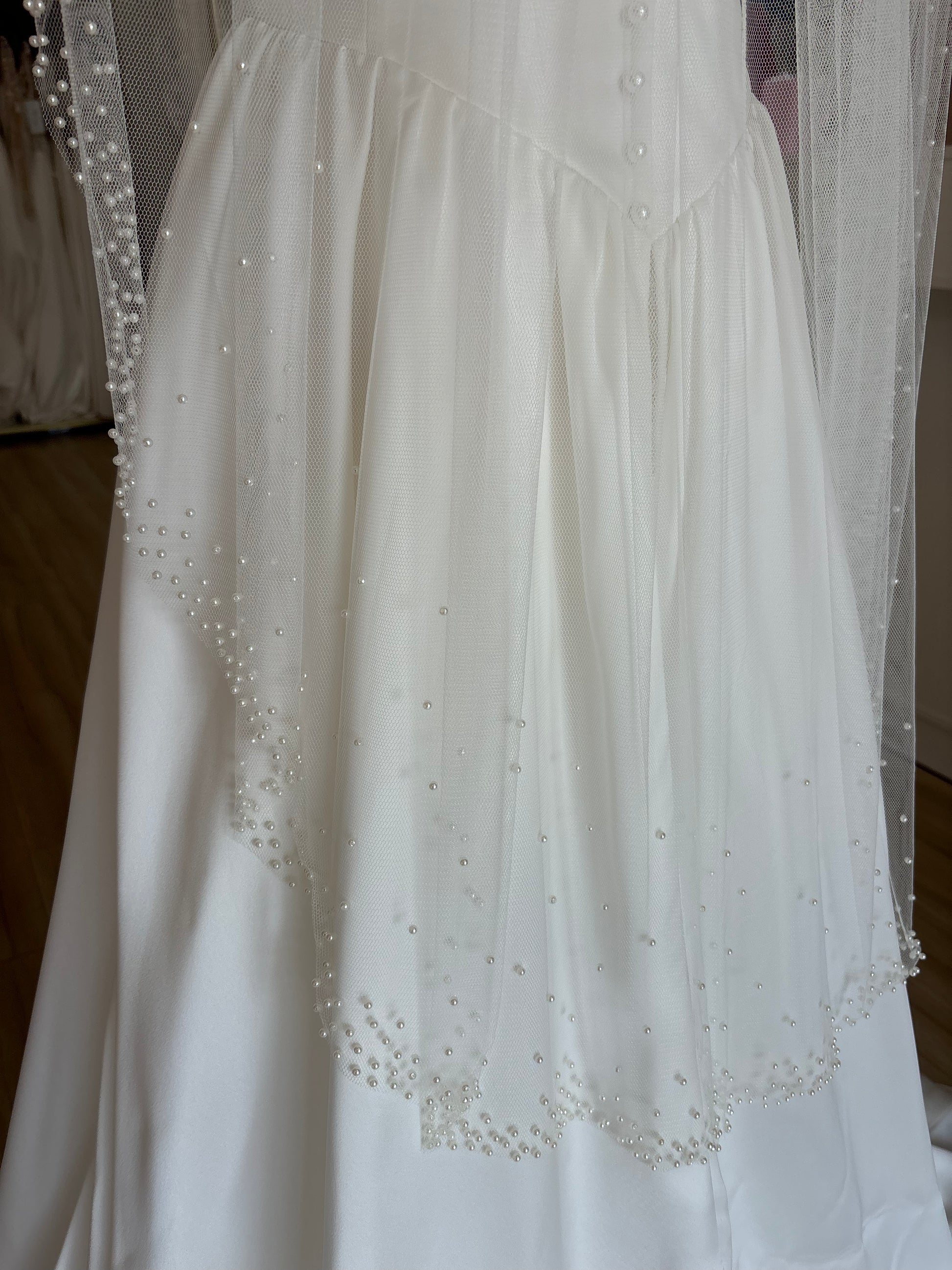 Soft, Luxe Tulle Veil with Scattered Pearls around the Edge