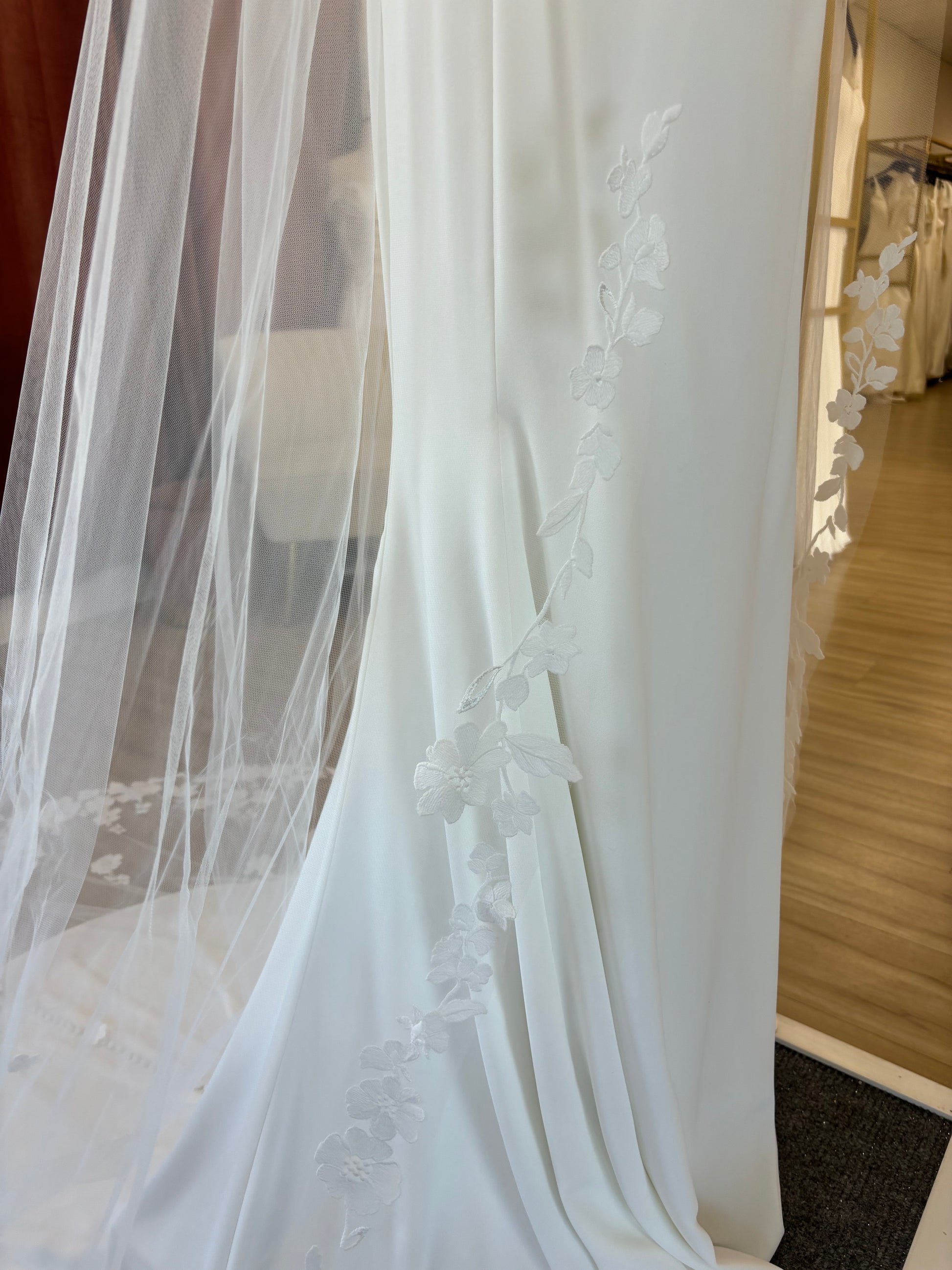 Cathedral Tulle Veil with white flower embroidery along the trim