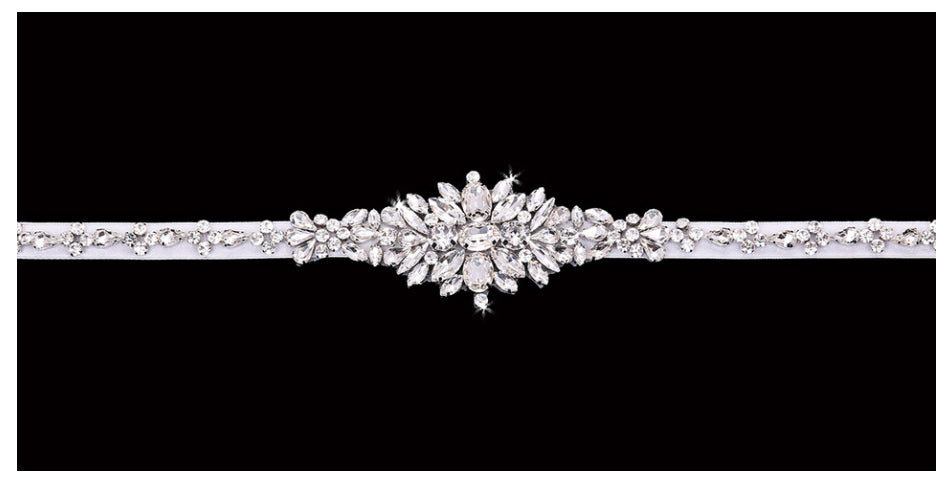 Ivory Satin Ribbon Belt with Clear Rhinestones. 71” L x 2” W Belt