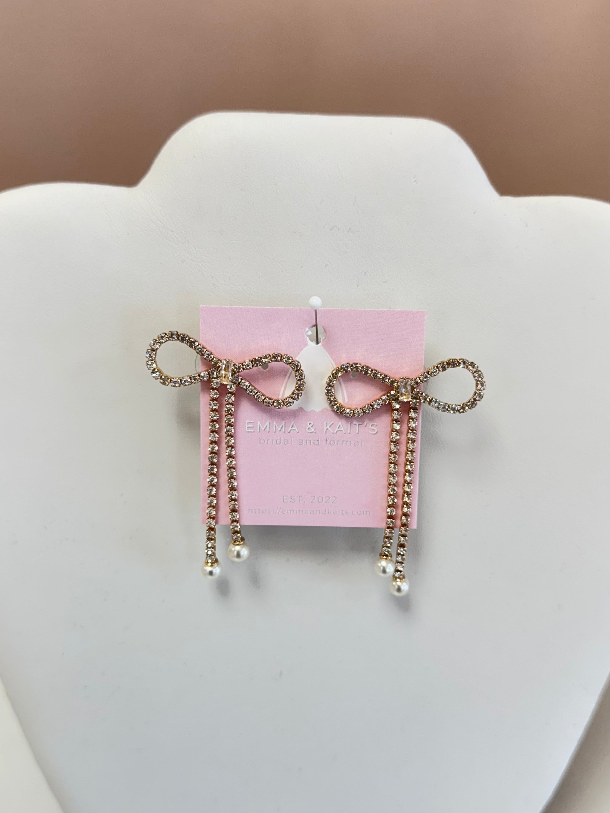 Gold bow earrings with pearl detail