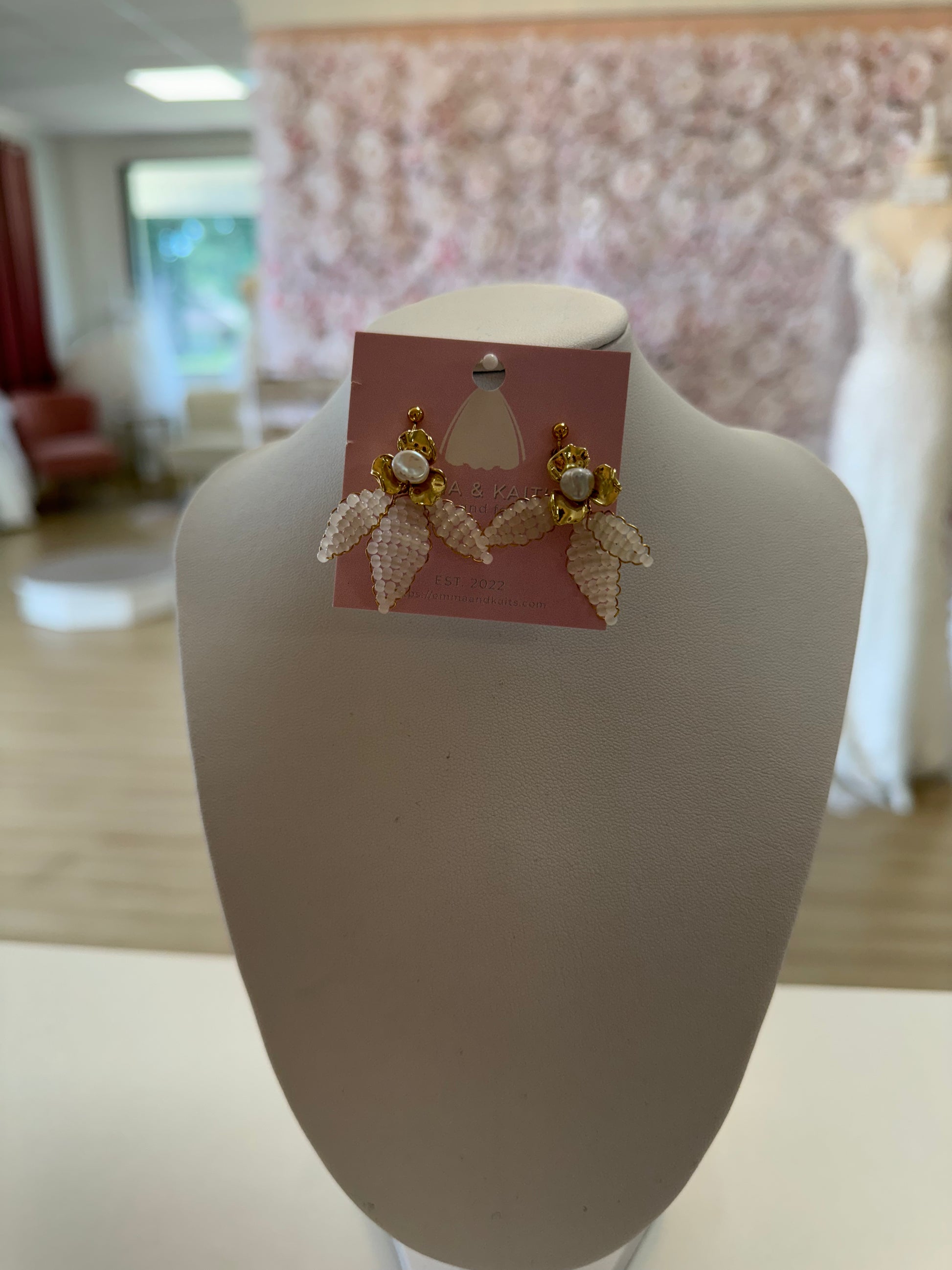 Floral and Beaded Leaf Earrings