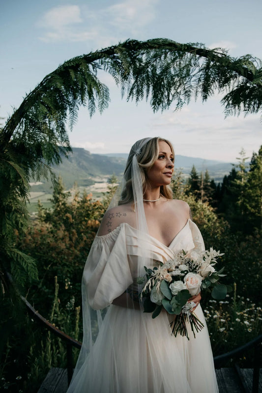 Satin A-Line Gown with Princess Seams and Waterfall Waistline