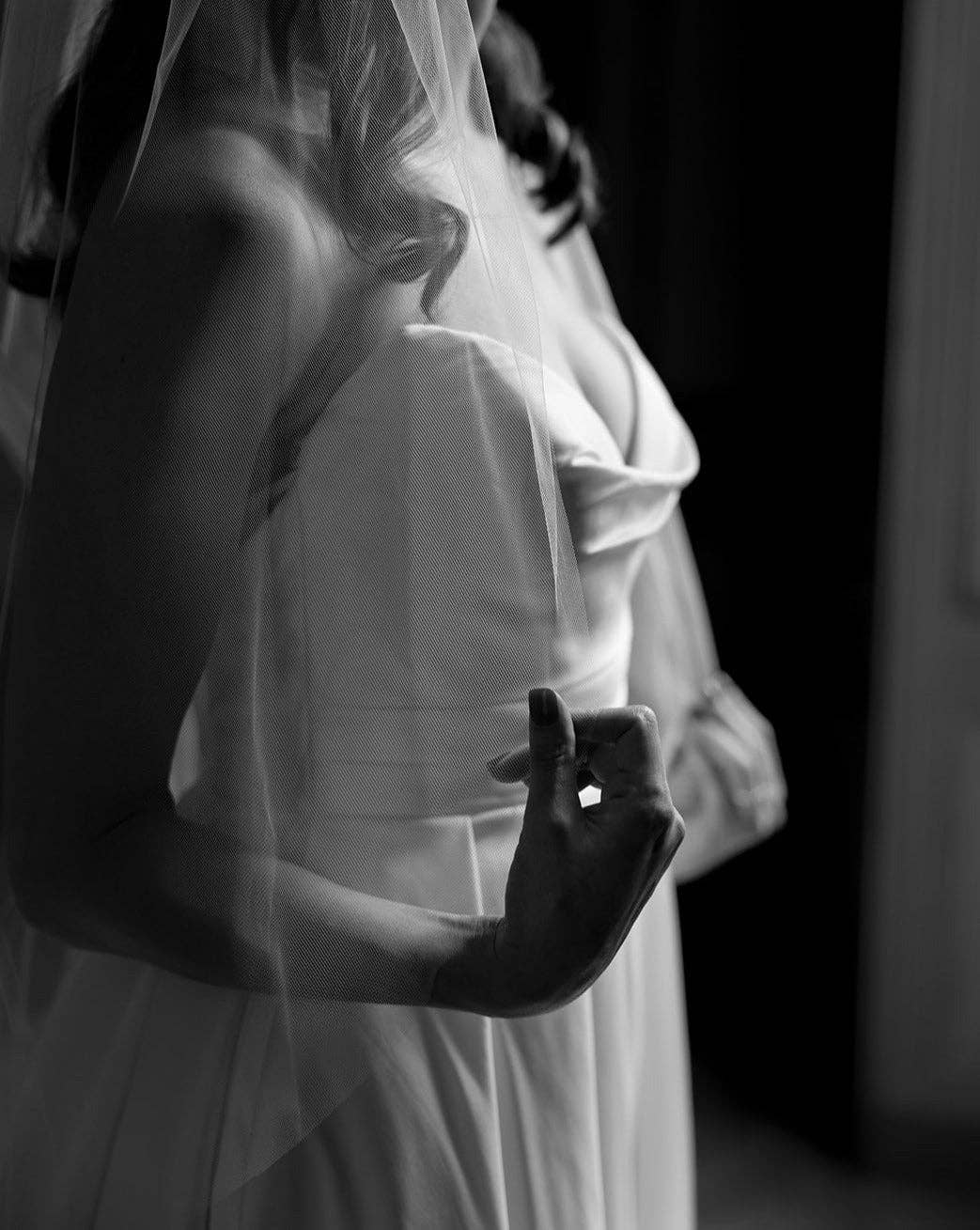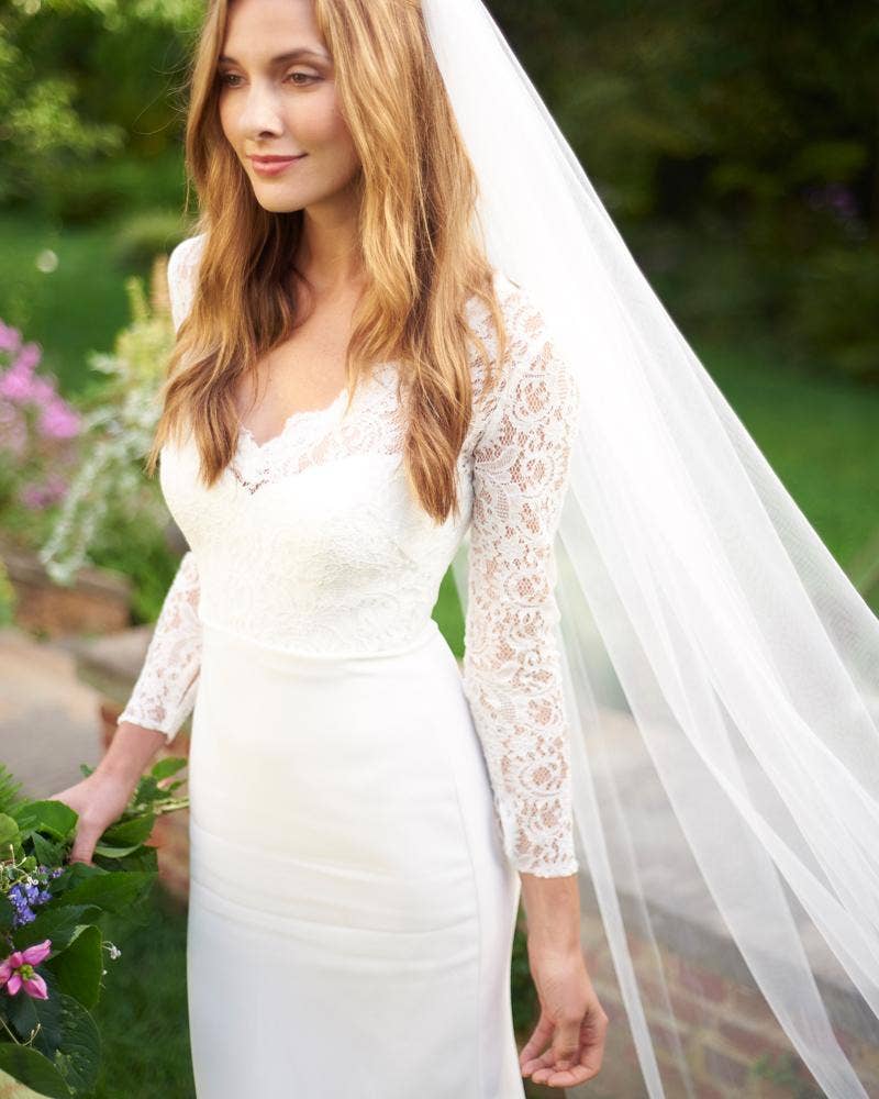 Wedding veil is crafted with soft, dreamy tulle & a cut edge that drapes beautifully.