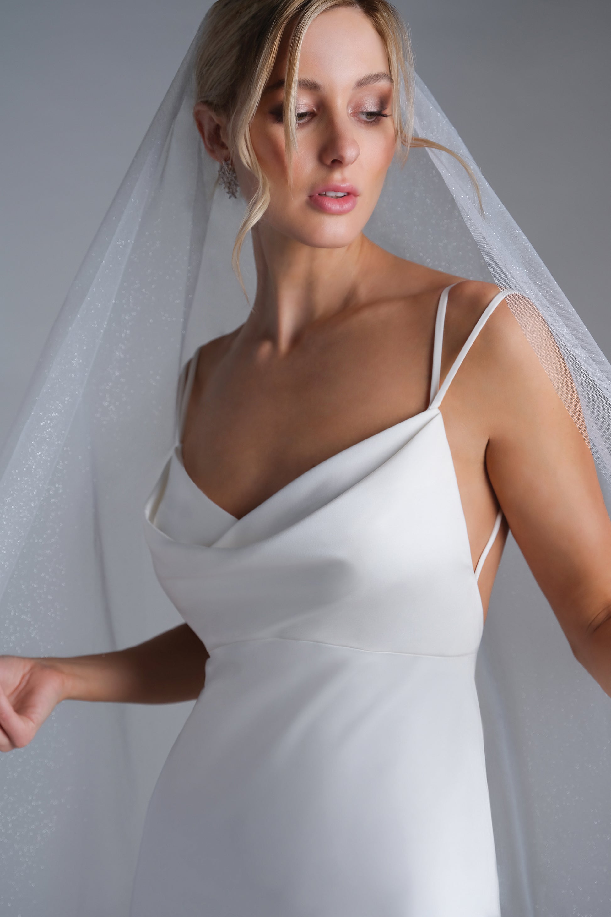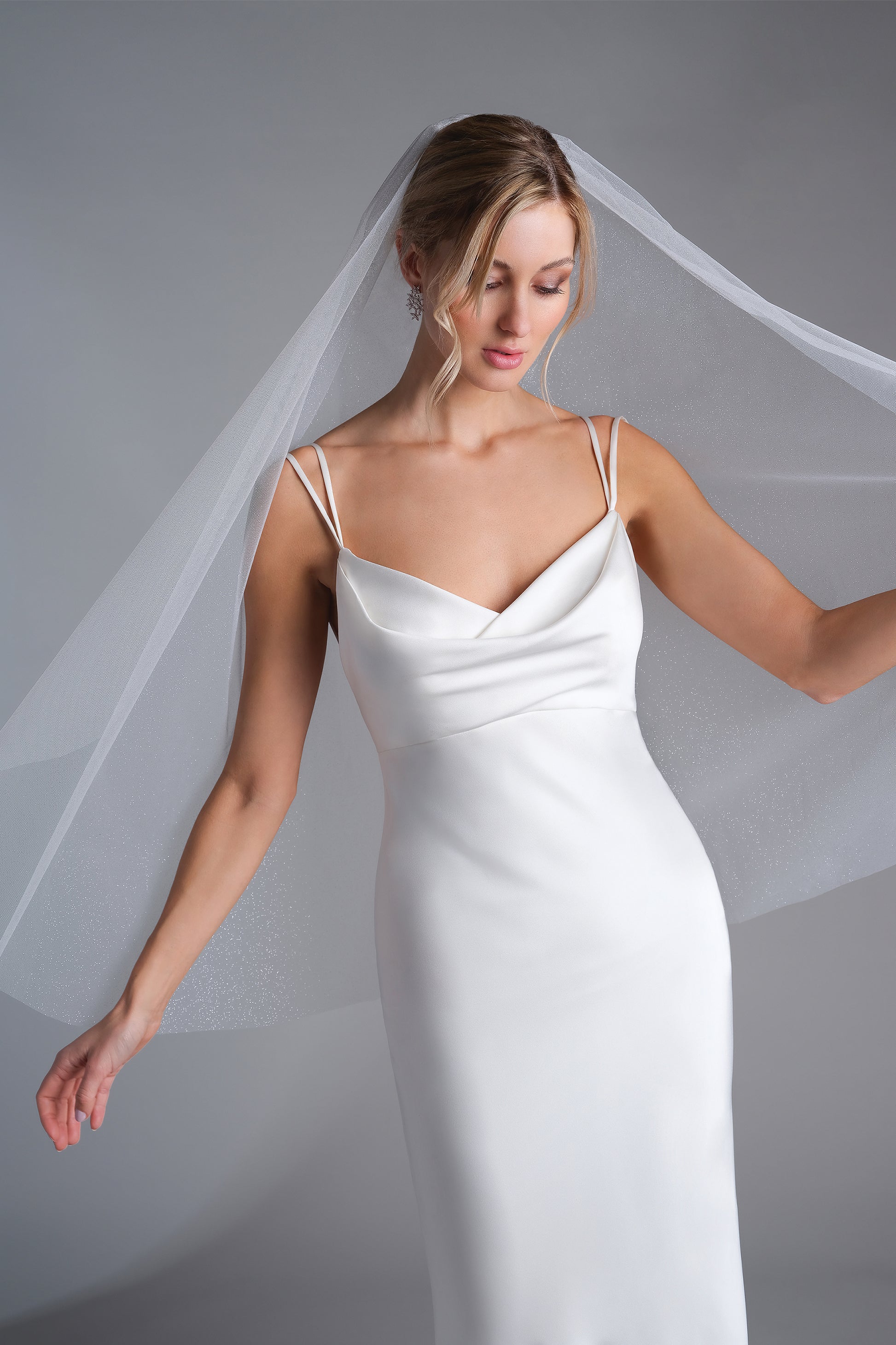 Fingertip Length Sparkle Tulle Veil with Raw Edge