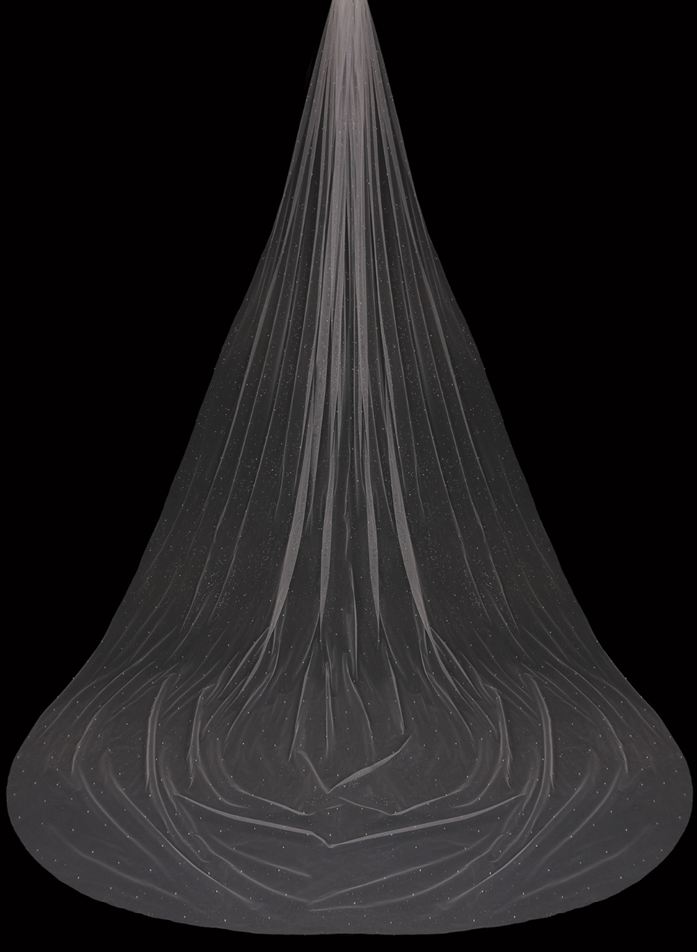 Wide Royal Cathedral Glitter Tulle Veil with Scattered Pearls